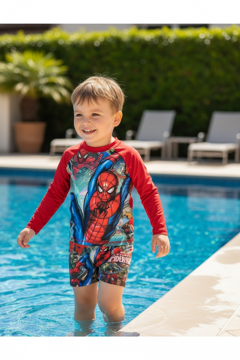 Conjunto Sunga Infantil + Camisa Proteção UV50 Homem Aranha